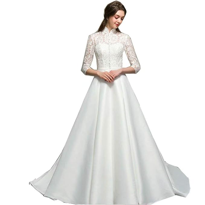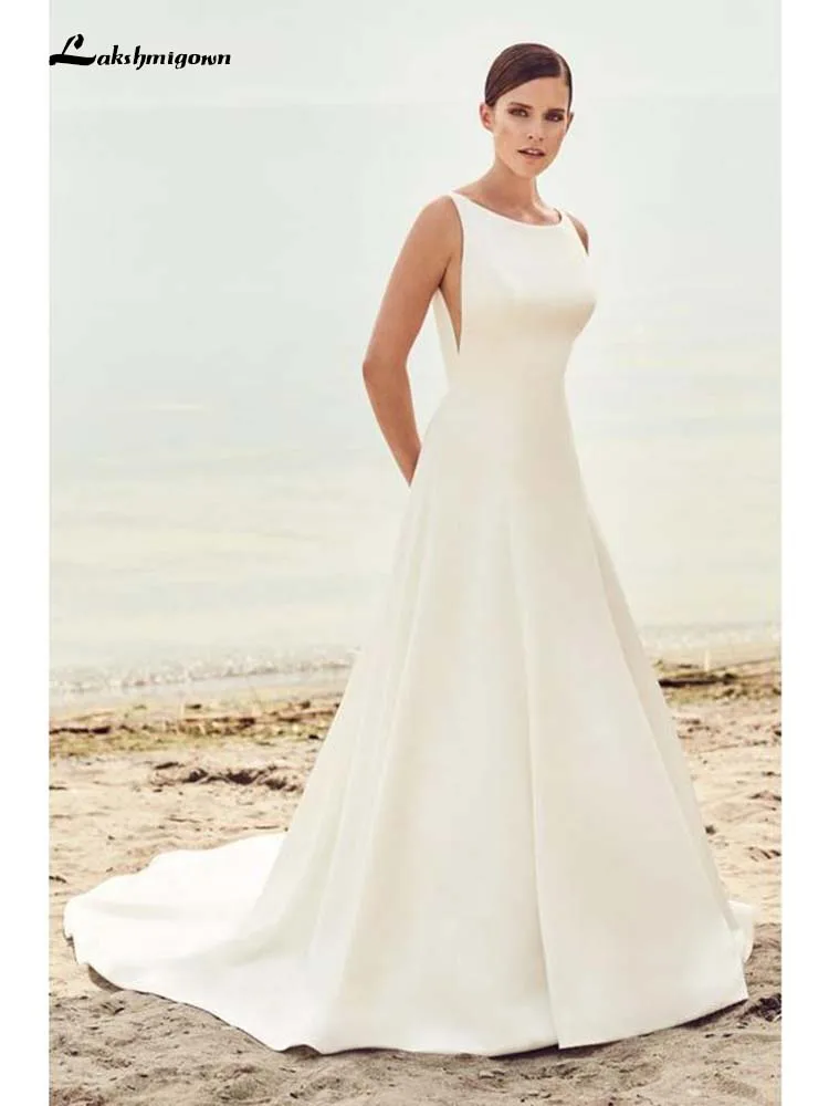 Aline Wedding Dresses Modest Wedding Dress Satin Wedding Dress Open Back Wedding Dress Wd00219