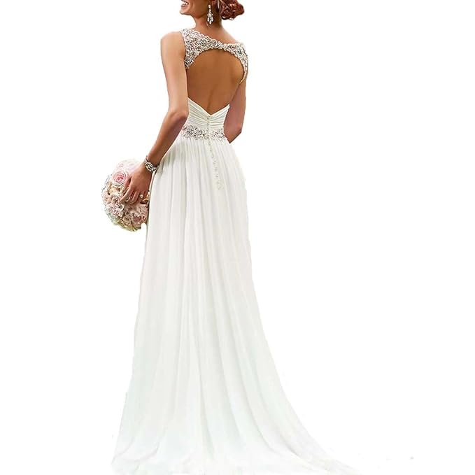 Chiffon Lace Wedding Dress Simple Beach Cheap Wedding Dresses Open Back Beautiful White Wedding Dress Beach Wedding Dress Cheap Bridal Gowns Sold