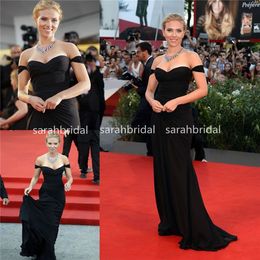Scarlett Johansson Black Off The Shoulder Evening Dress For Women 2013 Venice Film Festival
