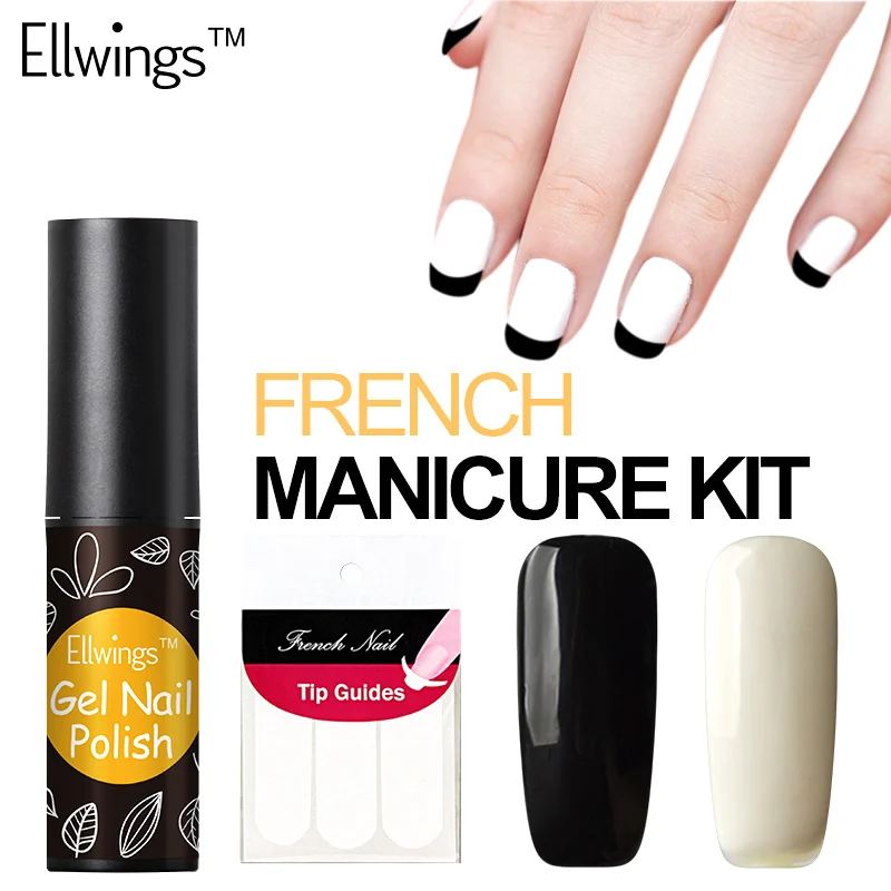 Ellwings 2pcs French Manicure Black White Nails Gel Polish 2