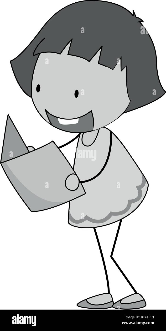 Girl Reading In Black And White Illustration Stock Vector