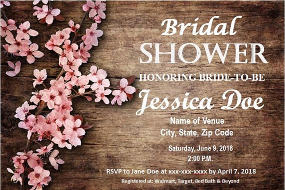 Cherry Blossom Bridal Shower Invitations Rustic Pink Etsy