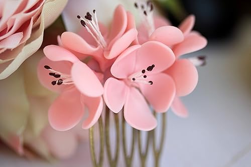 Amazon Com Cherry Blossom Bridal Hair Comb Pink Polymer Clay